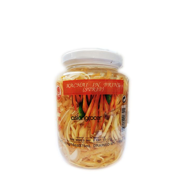 Kachai or Krachai is a meber of the ginger family but is milder flavour than ginger and galangal. It is one of main ingredients in Thai curry pastes. It's shaped like a finger and has brown skin which has a strong and distinctive aroma.